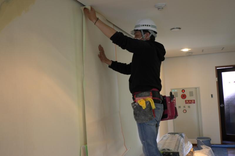 巡回しながら、壁紙やフロア、防水工事などの施工担当箇所について、安全面、品質面、工程面、コスト面で問題がないか確認し、必要に応じて職人さんに指示を出します。