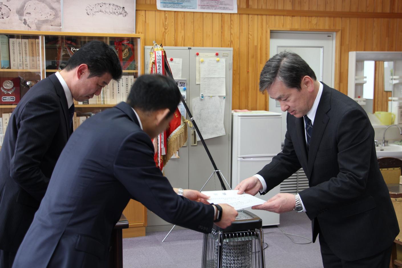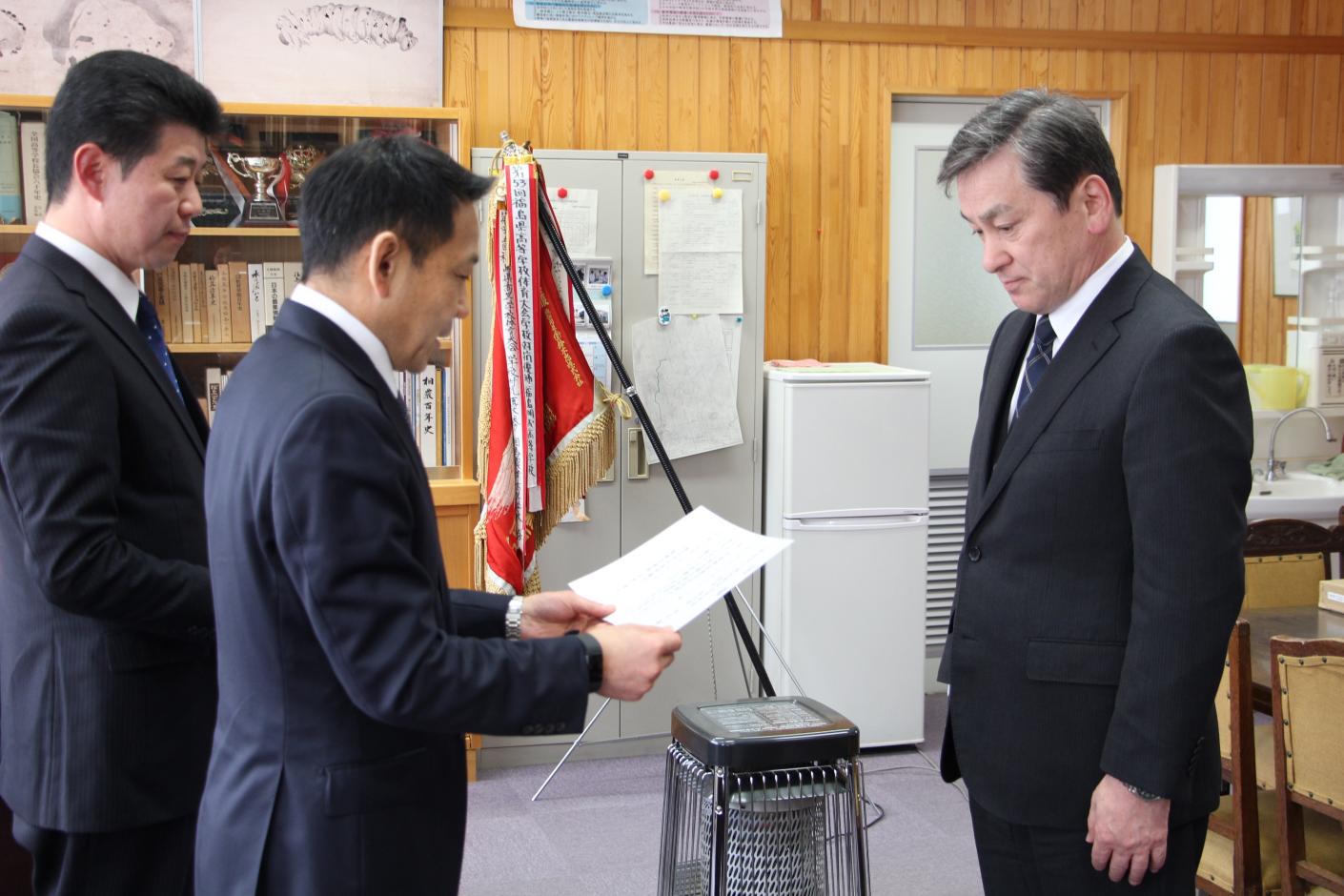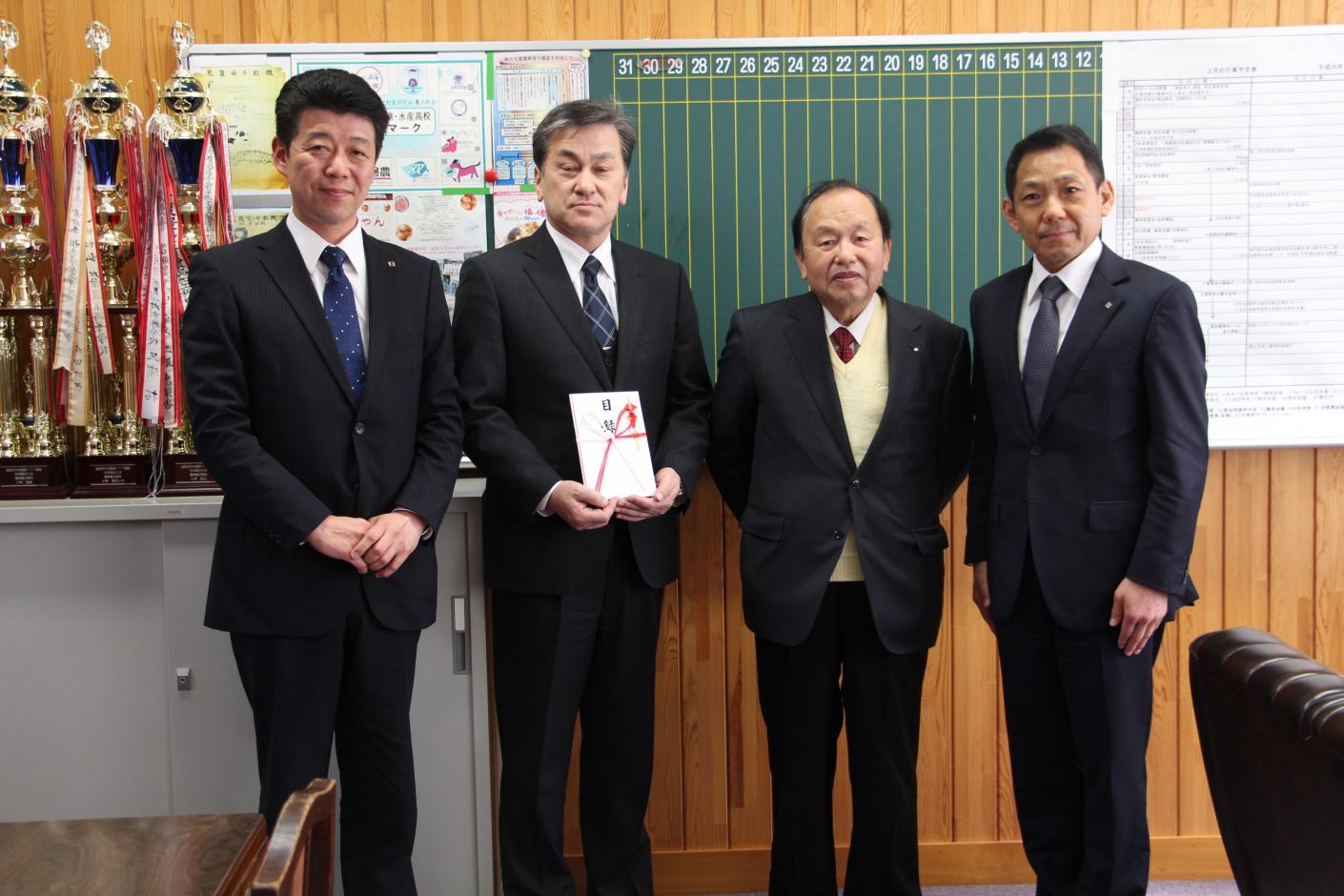 東邦銀行様が引き受け先となって、今回3回目となる私募債の発行に伴い、記念品として福島明成高校にフルートを寄贈しました。同校校長室で寄贈式を行い、大橋社長が「これからも地域社会に貢献できる企業であるよう、社員一同励んでいく」とあいさつしました。