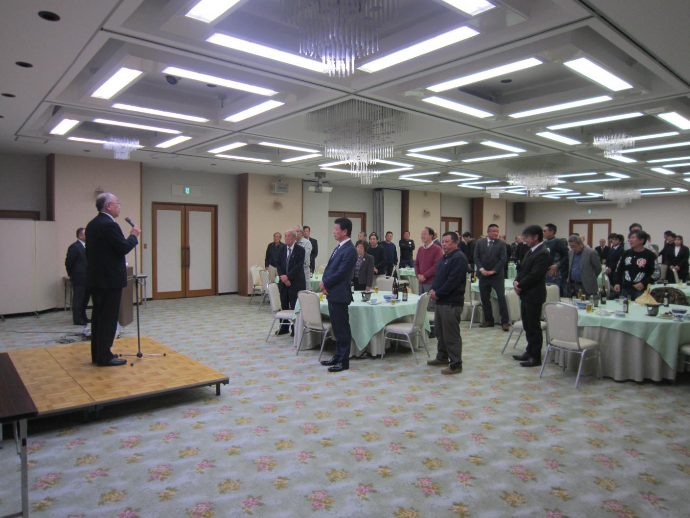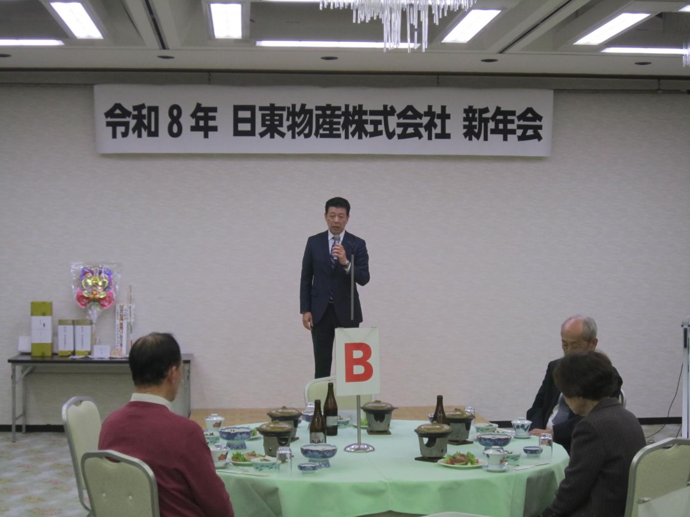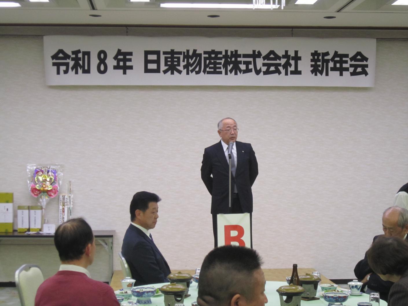 安全祈願祭を開催し、社員、職長全員で一年の健康と無災害を誓いました。大橋社長は年頭にあたり、「今年の干支である丙午は成長と飛躍の年とされている。世の中が急速に変化する中においても、常に挑戦する姿勢を持ち、業務に取り組んでいきたい」とあいさつしました。その後、新年会を開催し、大橋廣治会長のあいさつの後、永年勤続者表彰を行いました。