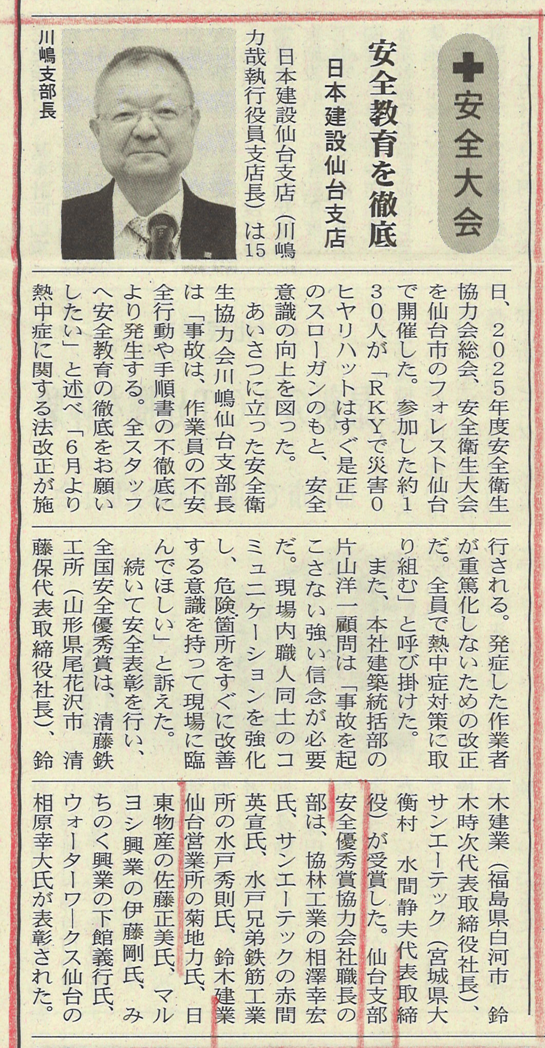 日本建設㈱仙台支店2025年度安全総会・安全大会