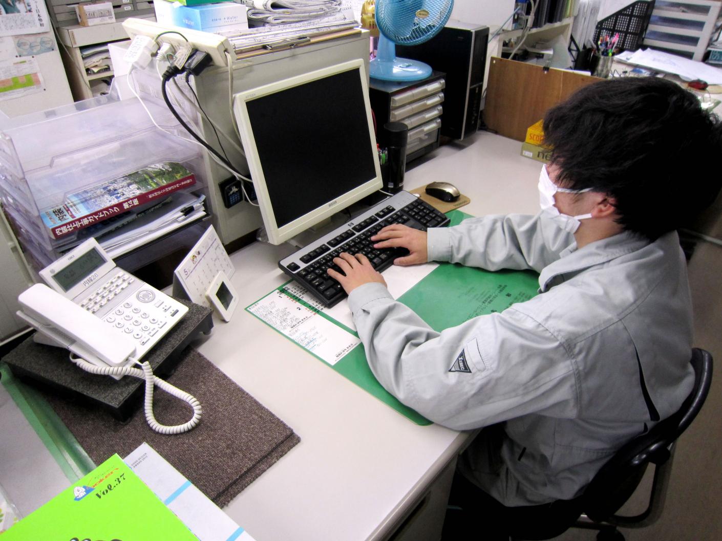 帰社後、見積り作成や材料発注などのデスクワーク