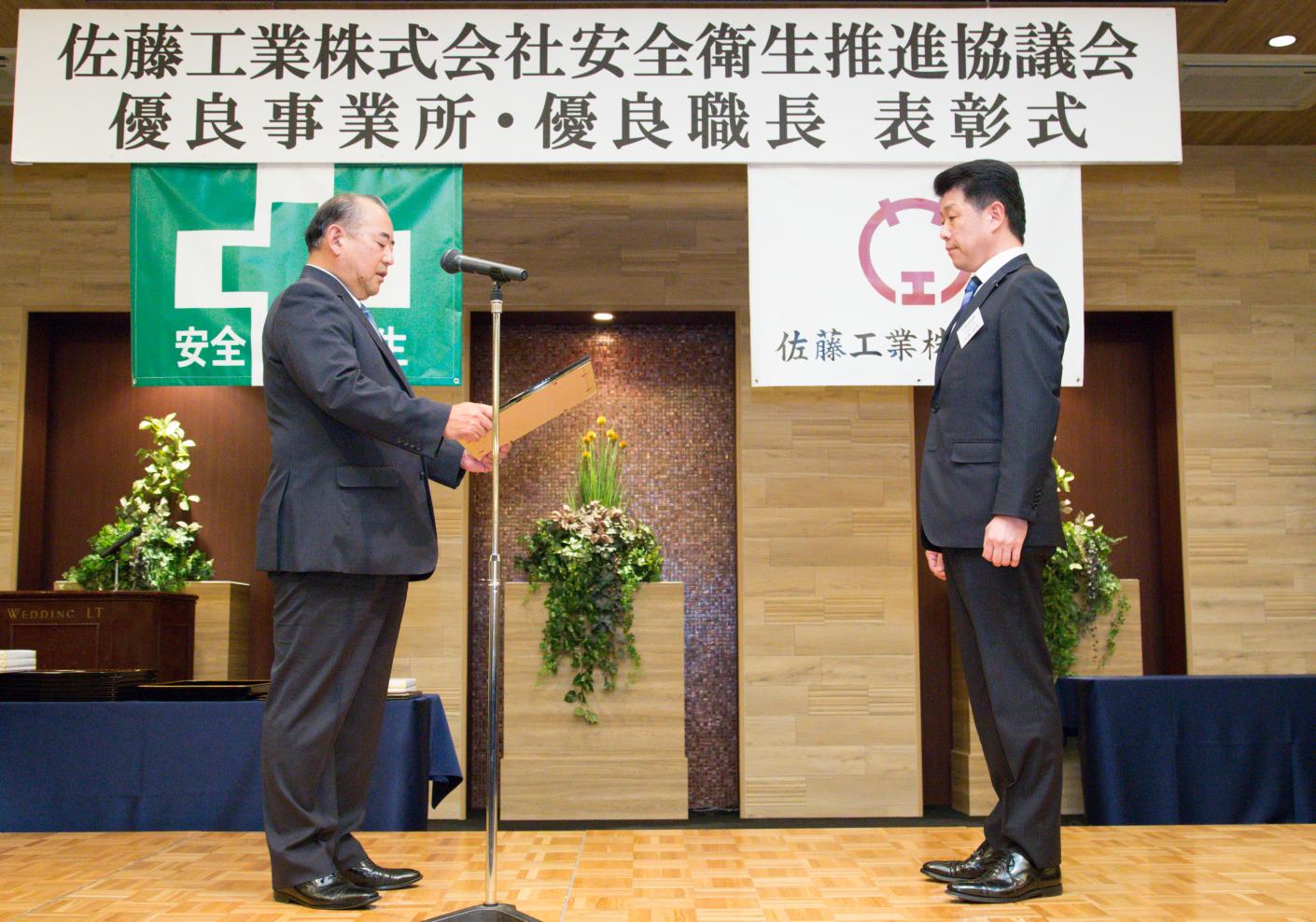 佐藤工業株式会社様より優良事業所表彰をいただきました。